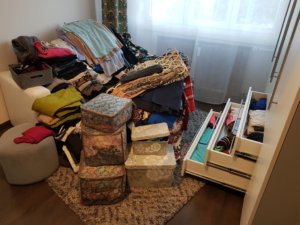 Májusban két napot arra szántam, hogy KonMari módszerével átválogattam a ruháimat. Döbbenetes, hogy mennyi ruhától szabadultam meg, pedig a ruháimat is rendszeresen átválogatom. Viszont a végeredmény is döbbenetes élmény volt, mert nem csak a fiókok, polcok könnyebbültek meg, hanem a szellős terek láttán az én belső terem, a lelkem is felszabadult. Nagyon kíváncsi vagyok, hogy meddig jutok el a kihívásban, mert a ruháimat tényleg drasztikusan átválogattam, így ez a kategória nálam nagyjából kiesik, de természetesen át fogom nézni őket, ha már semmit nem találnék más kategóriában.